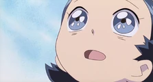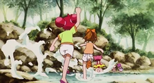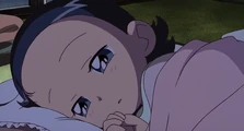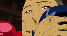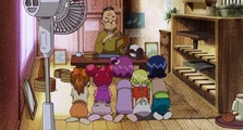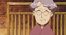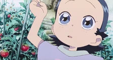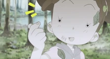 When they get back to the house, Momoko suggests that Aiko should go sit on grandpa's lap, and she does. Starting to overcome her fear of elder people. Then, she mentions the spots on his hands, and grandpa says that they are there due to his old age, and that he will probably die soon. The girls starts crying, saying they don't want him to go, as the movie comes to an end.