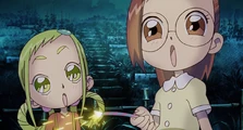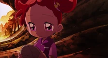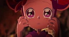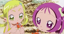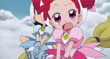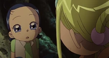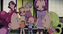 After walking for a bit, Doremi gets tired, so they transform into witches to fly on their brooms. Minutes after they take flight, Hazuki's broom starts failing, and so do the rest, being barely saved by Aiko. When they manage to land, they realize their clothes have reverted to normal, and they can't transform again. Then, a frog starts crying, and the girls realize that Doremi's grandma's song starts becoming reality.